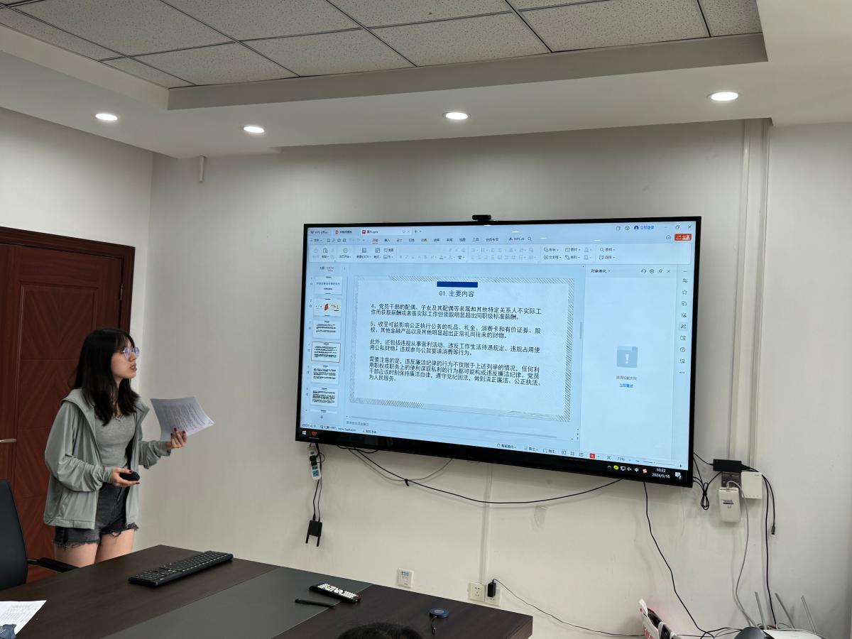 2024年5月16日上午,国际关系学院“党员先锋”读书班开班仪式暨党纪学习教育第一期读书班在立德楼B507会议室召开。学院党总支书记马驭骅、全体预备党员同志参加,专职组织员包淑萍主持本次读书班活动。