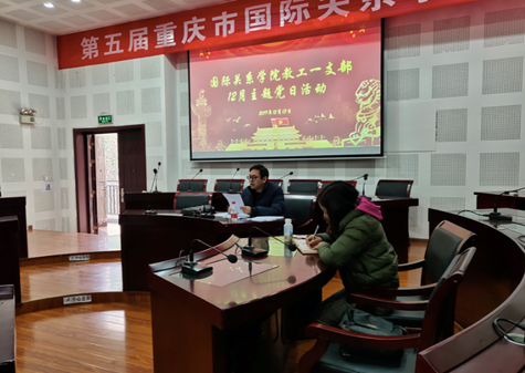 2019年12月13日,国际关系学院教工第一党支部12月主题党日活动暨2019年度支部专题组织生活会和民主评议党员活动在教学楼A2-1举行,党支部书记张庆同志主持会议。