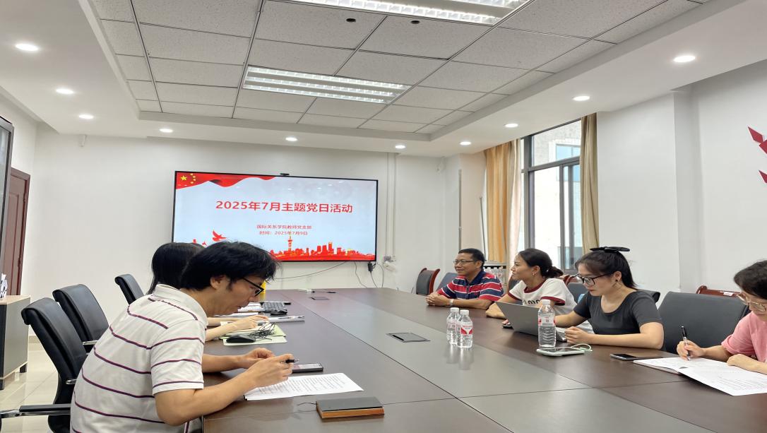 为进一步加强党员思想政治教育,提升党员党性修养。7月9日下午3点,国际关系学院教工支部以线上线下相结合的方式开展了 7 月份主题党日活动。本次活动由支部书记周思邑主持。