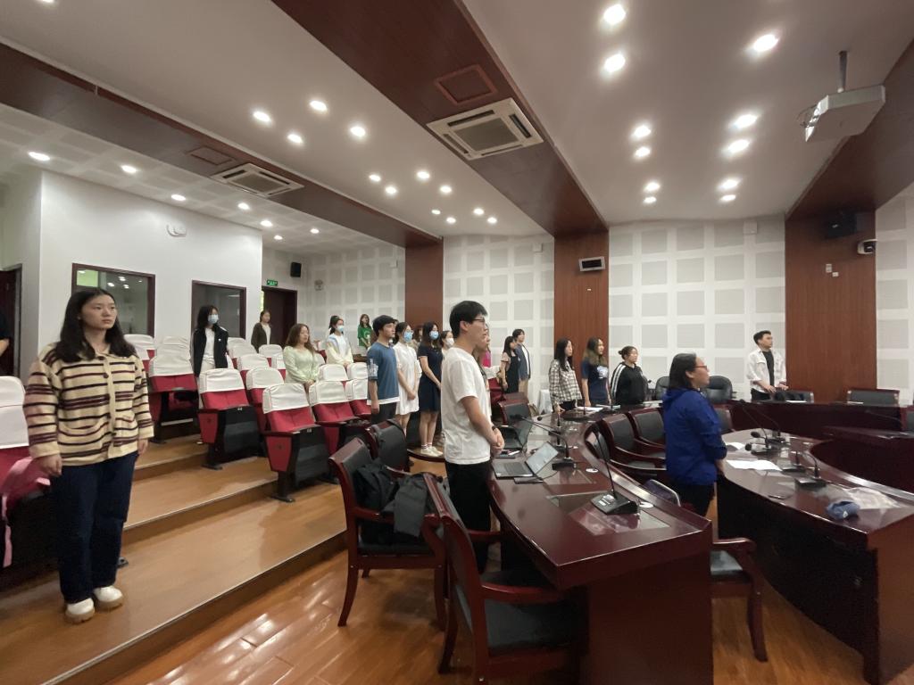 2022年5月9日中午12点40分,在西区歌乐楼A2-1教室,国际关系学院举行了隆重的入党宣誓仪式。国际关系学院党总支书记高绍邦、学生党支部书记石巧品、学生党支部委员王一丹、全体预备党员、部分发展对象和积极分子共计40余人参加了此次仪式。本次仪式由学院专职组织员包淑萍主持。