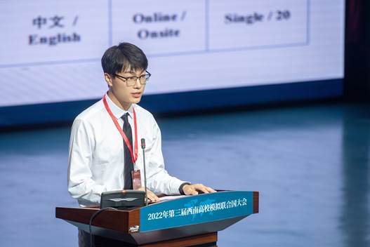 实验班2019级在读学生郑喆担任第三届西南高校模拟联合国大会秘书长