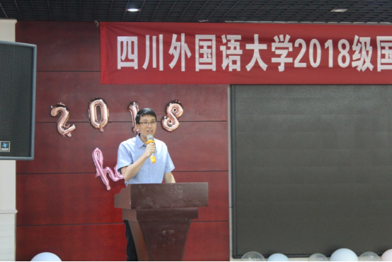 伴随着轻快的乐声,本次典礼拉开序幕。国际关系学院副院长宋国华首先致辞。宋国华满怀深情地回忆了与2018级国际组织人才实验班的同学从相识到相知的过程,肯定了同学们三年来学业上的努力和成长中的收获,并期望同学在赴英国攻读研究生的学习中再接再厉。