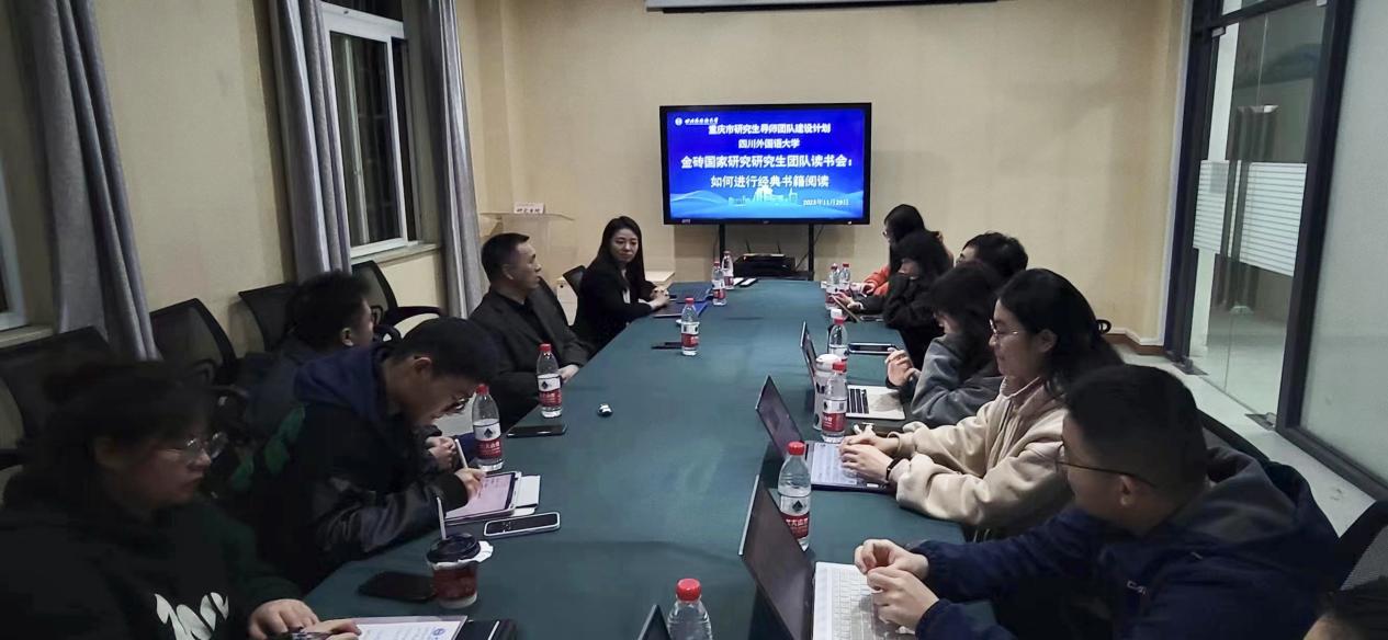 2023年11月29日晚上7点,重庆市研究生导师团队计划系列活动“金砖国家研究研究生团队读书会——如何进行经典书籍阅读”于区域国别研究院会议室举行。此次会议由游涵老师主持,新闻传播学院院长刘国强院长、国际关系学院2022级、2023级研究生以及俄语学院研究生参加了此次读书分享会。本次读书会主要内容是刘国强院长分享自己的阅读心得以及为同学现场解答一些读书时遇到的问题。