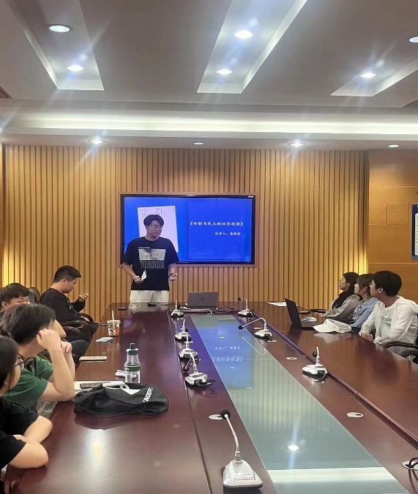 龚颢玺同学围绕《专制与民主的社会起源》一书,阐述了自己的阅读体会,他对比多种政治制度,对于专制与民主的起源和演变进行了深入的探讨。