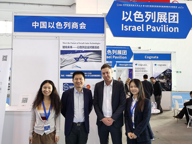 会议期间,恰逢中国国际展览中心举行2019世界智能网联汽车大会,作为创新国度的以色列积极参与,开展了“驶向未来——以色列企业对接活动”,而负责此次以色列展团组织工作的即为两位川外国际关系学院毕业生。陈老师看望了她们并与中国以色列商会总经理Ariel Briskin进行了交流,介绍了川外以色列研究中心的情况,并建议商会组织以色列企业参加2020年重庆智博会。