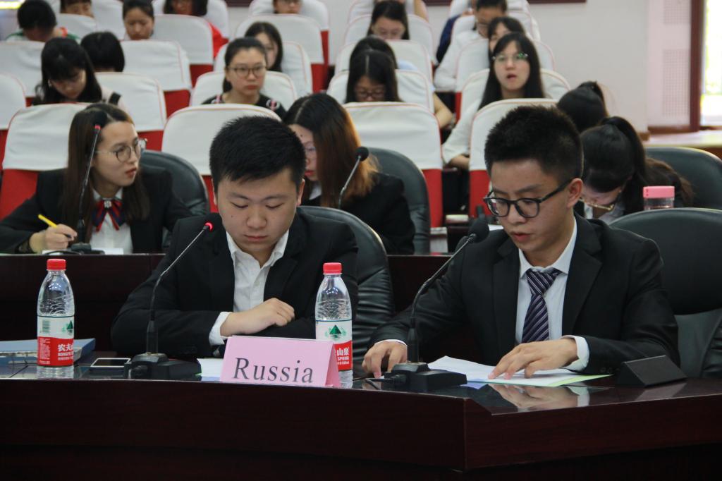 来自国际关系学院、俄语系和西葡语系的师生,模拟金砖五国印度、中国、巴西、南非、俄罗斯各国的商务部部长,电子商务企业代表,媒体代表的选手出席本次模拟会议。
