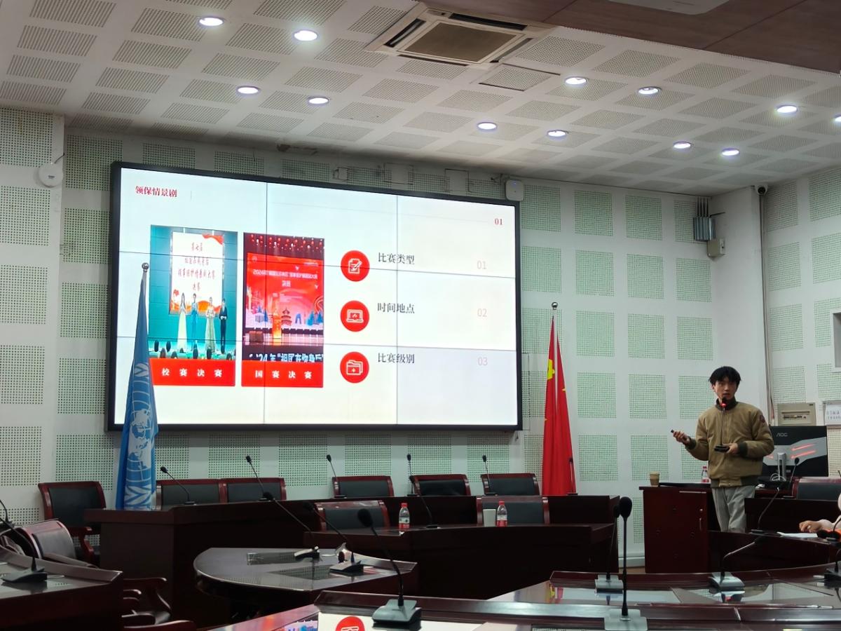 2024年12月12日中午,“‘祖国在我身后’领事保护情景剧大赛宣讲会”于西区歌乐楼A2-1模拟联合国实验室成功举办。国际关系学院陈丽娅老师给2024级本科生进行宣讲,宣讲会还邀请了今年在国家级领事保护情景剧大赛中荣获二等奖的作品《逃出无界》的导演、男女主角——吴文韬、刘洋、郭津毓同学到现场向大家分享参赛经历。