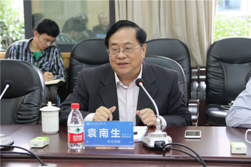 袁南生书记学术讲座 9日下午,袁南生书记参加了由我校党委书记明国辉主持、校长李克勇出席的国际组织人才培养指导会。在指导发言环节,袁书记首先阐述了国际组织人才培养最重要的使命就是培养国际公务员的观点。接下来,他用“一点启示、两点背景、三点建议”高度概括了国际组织人才培养的必要性、紧迫性和具体的操作措施。一点启示就是,任何国家在国际组织中的人才优势,都可以为国家利益的更好实现提供关键的支持。两点背景,即印度高度重视国际组织人才以及我国国际组织人才的缺失,已经影响到我国国际话语权的实现,昭示我们必须重视国际组织人才的培养。三个建议,分别是:第一,统一认识,尽管国际组织人才培养不是一件容易的事,但却是一件能办且必须办的大事;第二,摸清情况,既要摸清国际组织人才的需求情况,也要摸清国际组织人才招考内容和实习情况;第三,适当调整专业和课程设置,针对性地设置国际组织人才需要的特殊课程,并增加语言教学和双语教学的比重。