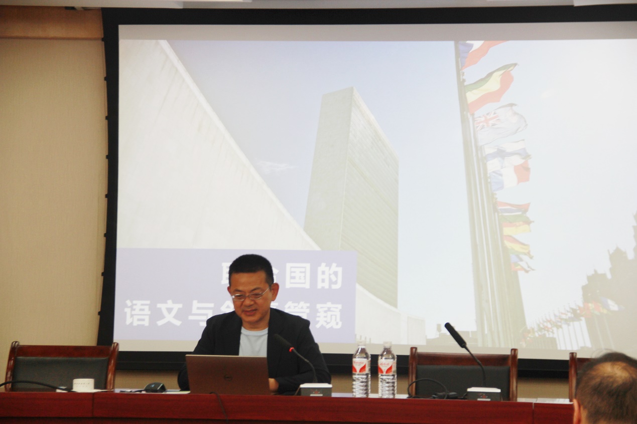 5月23日,联合国纽约总部资深编校黄文新应邀来校,为太阳成tyc7111cc国际组织人才实验班同学做题为“联合国的语文与叙事管窥(兼谈联合国工作岗位与机会)”的专题讲座。讲座由国际关系学院张国玺老师主持,来自国组班23、22、21级的近50名同学参加讲座。
