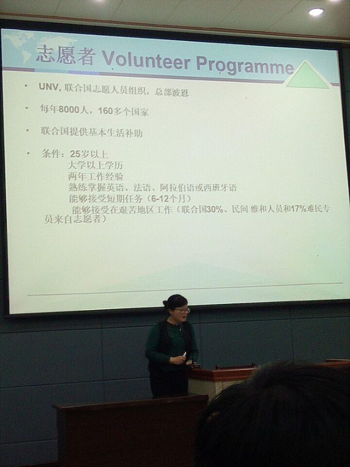 张老师的讲座主要涵盖了以下三点:一是国际组织现状及人事制度,当今社会需要一大批了解党和国家方针政策、了解我国国情、具有全球视野、熟练运用外语、通晓国际规则、精通国际谈判的专业人才。二是国际组织用人标准。张老师以联合国为例,介绍了相关招录专业和主要招录方式,并且为同学们列出了以胜任能力为基础、核心能力与管理能力并存的国际组织用人标准。其中核心价值包括政治素养、专业素养与尊重多样性。三是如何做好职业生涯规划。张老师指出,同学们首先要“以终为始,因势利导”:常立志不如立长志,要有方向感;然后是“自我认知”,对自己定位准确;紧接着重要的一点是要“制定计划,锁定目标”,即合理支配时间,丰富和拓展自己,做好职业规划;接下来要“认清形势”,了解相关现状及用人标准;最后一点是“能力构建”,硬实力可量化,软实力可感知,督促同学们一定要多读书,读好书。