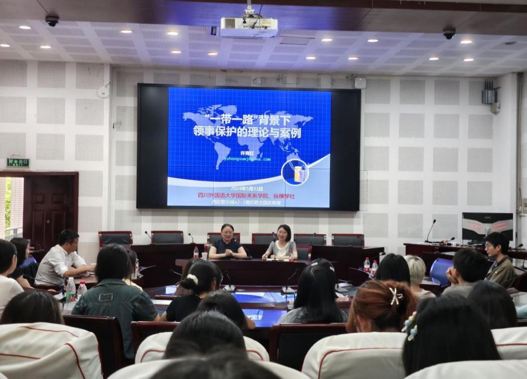 5月31日上午,外交部领事司许育红博士在歌乐楼A2-1作题为《“一带一路”背景下的领事保护理论与案例》学术讲座,国际关系学院外交系主任周思邑主持讲座,龙兴春、李智婧等教师代表及部分国际关系学院学生参加讲座。