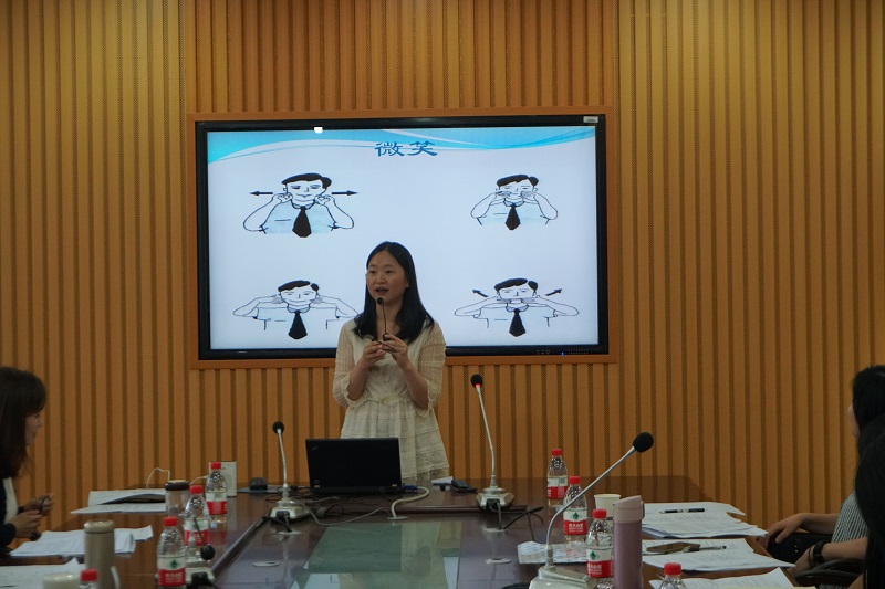 参赛教师通过抽签的方式来决定授课顺序。英语组有6位参赛老师,非英语组有4位参赛教师。第一位是来自国政外交教研室的陈丽娅老师,她的参赛课程为《外交外事礼仪》,她采用视频与实践相结合的方式进行教学,课堂有趣而氛围良好。