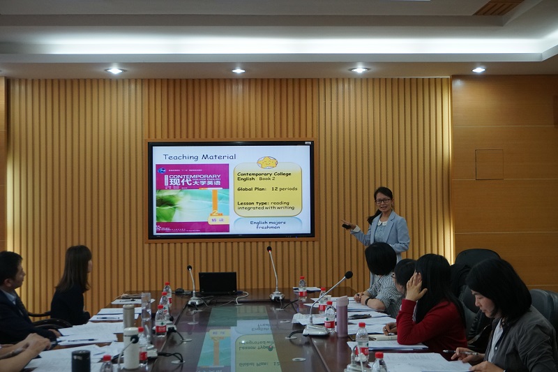 第五位是来自英语低年级教研室的孟利君老师,他的参赛课程是《基础英语(2)》,他的授课风格是比较严谨,授课内容丰富。
