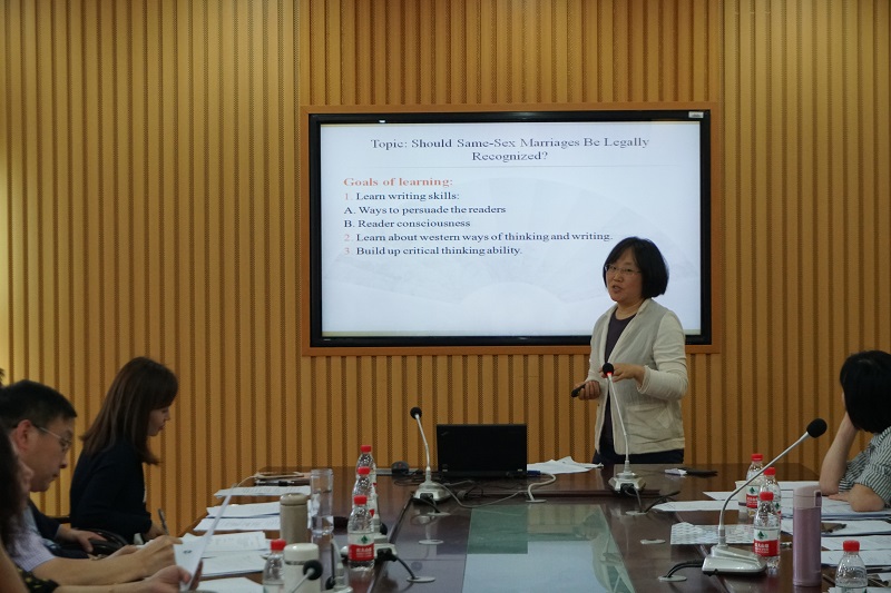 第九位是来自英语高年级教研室的刘芳老师,她的参赛课程为《时事评论与写作(2)》,她有丰富的知识积淀,且精神饱满,富有激情。