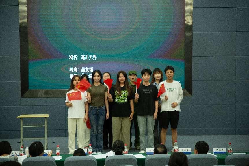 第九个节目是国际关系学院2023级刘洋等同学带来的《逃出无界》。这部情景剧生动地展现了缅甸的诈骗分子如何精心设计骗局将受害者引入深渊,受害者们如何在痛苦挣扎中寻求救赎,使馆人员如何紧急筹划、最后挺身救出受害者的惊险过程。此剧目紧凑的剧情和生动的表演赢得大家的阵阵掌声。