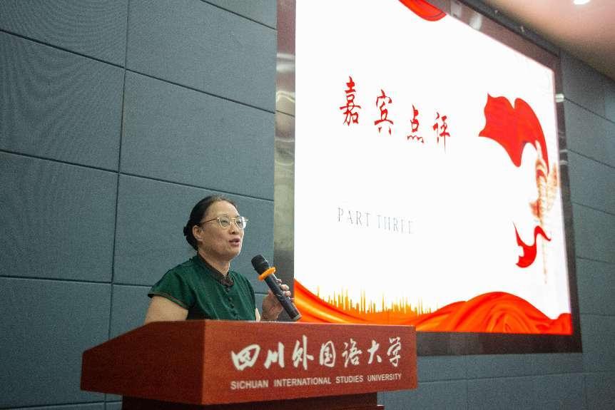 表演结束后,许育红教授代表评委组给每一组剧目都做了详细的点评,对每组表演都给予肯定和表扬,同时也提出可改进之处。接着,马驭骅代表主办单位做总结发言,感谢比赛筹备组的辛勤付出,教务处对比赛的精心指导,各兄弟学院师生的大力支持,评委教师们的公正评判,参赛选手们的精彩表演,希望学校能产生越来越多类似“祖国在我身后”领事保护情景剧大赛的优质平台,让同学们借此展示专业才能和综合素质,教师检验教育教学成果,同时丰富校园文化,助力人才培养。