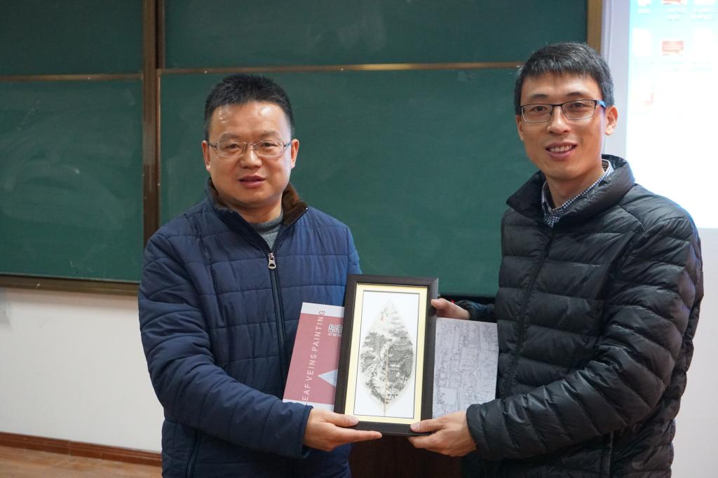 | 宋院长赠叶脉画于张处长 |