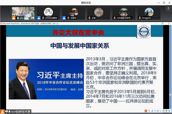6月8日,陆海发展研究院“红岩公共政策讲坛”第一期活动顺利举行,中国前驻摩洛哥大使孙树忠受邀做了题为“外交大权在党中央”的政策讲座。该讲座同时也是我校“国际组织人才创新实践名家讲坛”的第二期活动。讲座由国际关系学院副院长宋国华主持,陆海发展研究院教师和国际组织人才实验班同学50余人参加了此次线上讲座。