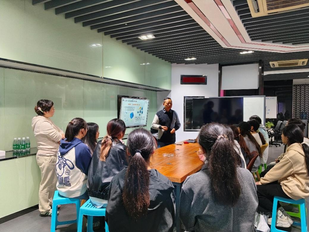 在完成公司及新产品展示区参观后,师生一行转入企业工作室,深入了解其文化理念、核心价值观与发展战略。企业负责人重点阐释了“我是一切问题的根源”这一价值主张,展现出以“创新、协作、担当”为内核的精神体系,以及打造行业领先智慧科技服务商的发展愿景。这一环节通过理念解读构建了从技术认知到精神共鸣的完整认知链条,为实践教学提供了的立体化学习样本。