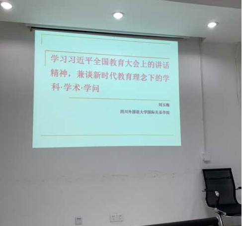 2018年12月25日下午2点,国关院学生第四支部党课学习在西区行政楼B507召开。国际关系学院刘玉梅院长、副书记带领全体学生党员们深入学习了习近平全国教育大会的讲话精神,并与同学们讨论了新时代教育理念下的学科•学术•学问之间的关系。