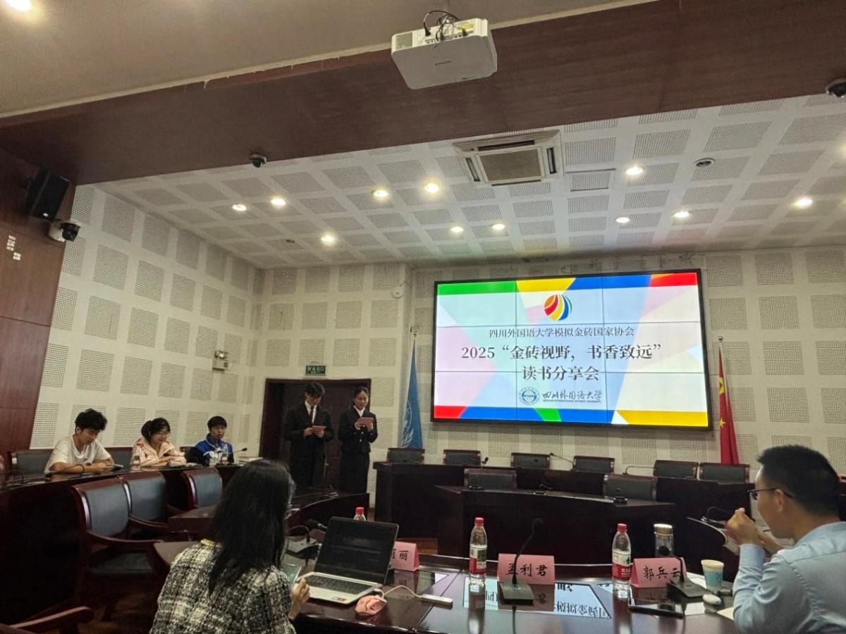 2025年11月4日14:00-15:30,太阳成tyc7111cc模拟金砖国家协会于西区歌乐楼A2-1模拟联合国实验室成功举办了主题为“金砖视野,书香致远”的读书分享会。本次活动汇聚了众多对文学和学术怀有浓厚兴趣的同学,旨在通过经典著作的分享与老师的解读,探寻历史与现实的交汇点,启发更多的思考。本次读书会特别邀请了国际关系学院郭兵云老师、陈丽丽老师担任点评嘉宾,他们的专业视角与深刻见解,为同学们搭建了一座思想交流的桥梁。