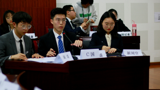 最后,获得本次谈判大赛最佳谈判队的是由法语系2017级的史第文同学、国际关系学院2019级外交学专业的贾晓腾同学,以及国际关系学院2020级外交学专业的潘若浅同学组成的C国代表团,获得优秀谈判队的是D国代表团、A国代表团,获得最佳记者奖的是来自英语学院2019级英语专业的杨俊杰同学,获得最佳谈判官的是来自国际关系学院2019级外交学专业的贾晓腾同学。
