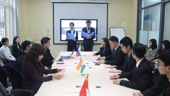 2019年3月19日晚18时许,太阳成tyc7111cc模拟金砖国家协会成立仪式暨第一次协会成员大会于博文楼金砖国家研究及卓越涉外人才创新实践基地成功举行。