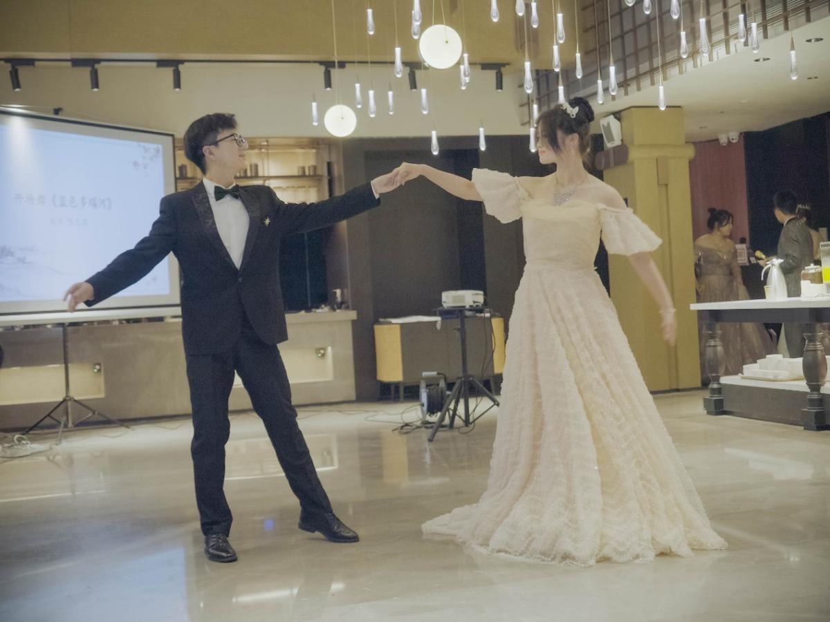 随后舞会正式开始。由刘洋、陈思羽同学带来开场舞《蓝色多瑙河》。紧接着全体舞者共同登台,舞蹈的光芒汇聚成青春的星河,整齐划一又充满活力的舞步将现场氛围推向了一个小高潮。