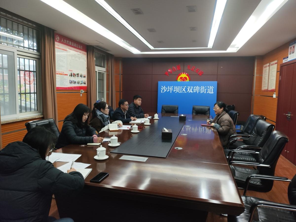 12月22日,调研团队走访双碑街道办事处。街道书记围绕街道整体运行架构和基层治理实践情况进行介绍,重点讲解了党建引领基层治理和“141”基层智治体系的运行情况,并就居民自治推进过程中面临的现实问题与调研团队进行了交流。