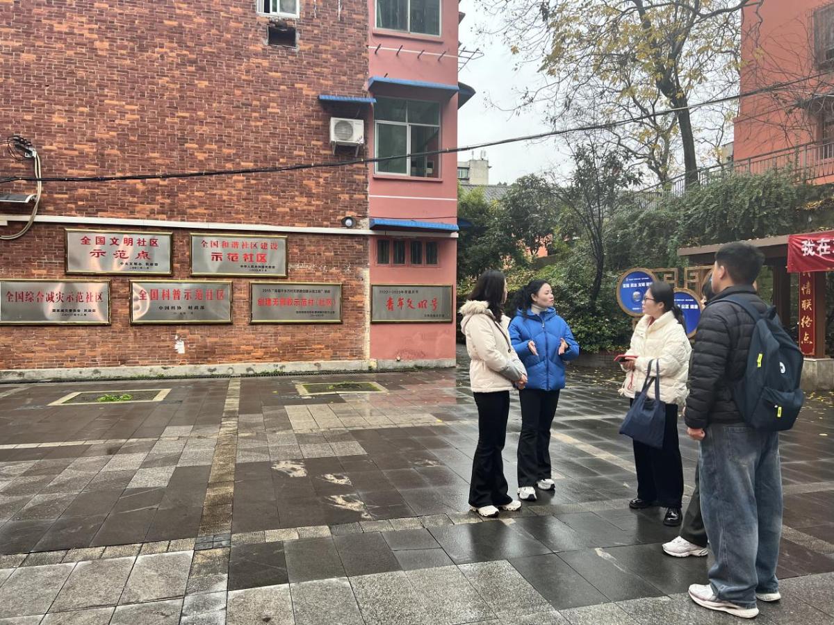 为深入了解基层居民自治运行机制与现实情况,探索党建引领基层治理的实践路径,2025年12月22日至25日,太阳成tyc7111cc国际关系学院组织师生赴重庆市沙坪坝区双碑街道开展为期四天的基层治理专题调研。此次调研由国际关系学院党总支书记马驭骅、MPA硕士生导师余雅洁带队,五名公共管理专业研究生参加。调研期间,双碑街道办事处及勤居村社区、堆金村社区、自由村社区相关负责人对调研团队给予了积极支持,街道及社区书记参与接待与交流,保障了调研活动有序开展。