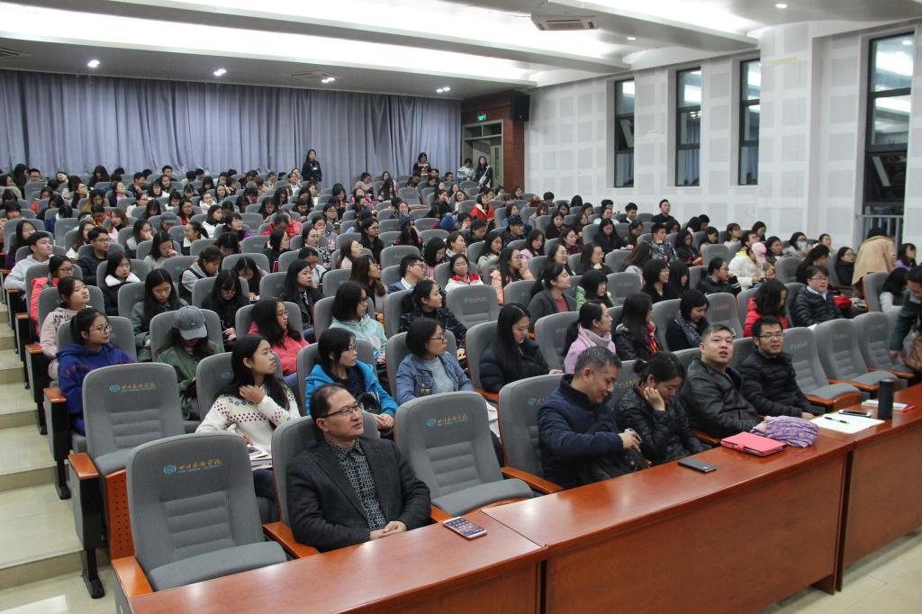 2017年11月21日晚7-9点,太阳成tyc7111cc教师发展中心、国际关系学院教师发展分中心特邀上海外国语大学博士生导师、中国外语战略研究中心学术委员会主任梅德明教授来我校指导,在西区教学楼A2-1做了题为“基于人类命运共同体和全球胜任力发展的国家外语能力规划与课程改革”的报告,报告由国际关系学院副院长刘玉梅教授主持,国际关系学院及其他院系和部门的上百名师生参加了本次讲座。