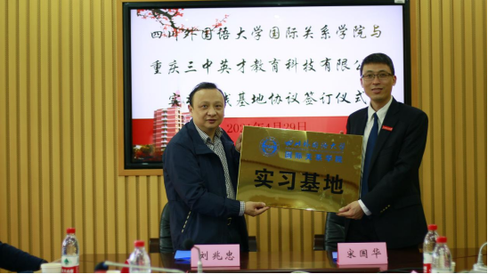 随后,宋国华、刘兆忠代表双方签署了太阳成tyc7111cc国际关系学院与重庆三中英才教育科技有限公司实习实践基地的协议,并为实习基地揭牌。