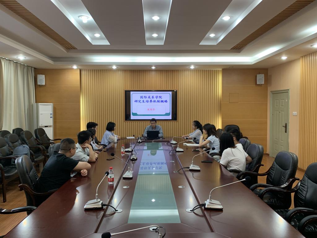 之后,宋院长为2019级比较制度学专业全体研究生开展了第一期入学教育活动。首先,宋院长向同学们介绍了国际关系学院研究生教育的历史、现状和发展方向。其次,他结合研究生培养机制,详细地梳理了我院研究生教育的培养目标、培养理念、培养模式和培养方案等方面的内容。最后,他勉励同学们在未来三年的学习和实践中脚踏实地、不断创新、勇攀高峰,并对同学们提出三点希望:一、科研工作往往是枯燥的,学术事业往往是艰苦的,同学们只有始终坚持扎实学习、埋头苦干,才能在学术领域有所建树;二、同学们要有广泛的兴趣爱好,要兼收并蓄、融汇贯通,要积极开展原创性、系统性、引领性的研究;三、同学们应当勤学多思,努力成为具有中国情怀、全球视野和创新精神的高素质复合型国际化人才。