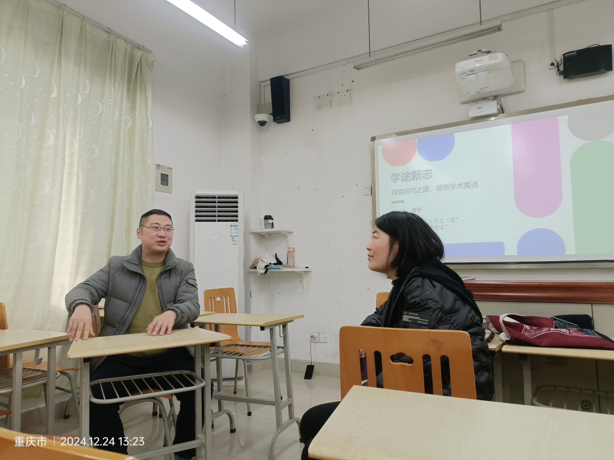 2024年12月24日下午,国际关系学院实践周活动之“学途新志”座谈会于歌乐楼B205教室顺利举行。国际关系学院席桂桂、唐宇两位老师与大四同学就大学之“学”及未来规划等事项展开交流,特别针对本科生毕业论文的选题构思和行文规范等内容进行了研讨。