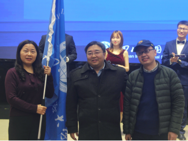 11月25日晚比赛结束后,教务处王伟副处长致闭幕词,他对国际关系学院为承办本次大赛作出的努力表示高度肯定,并对选手们精彩的表现给予高度的赞扬。随后进行的是大赛主办学院的校旗交接仪式。校旗从国际关系学院刘玉梅院长手中交还给教务处王伟副处长,王副处长将校旗授予明年的承办单位翻译学院胡安江院长手中。交旗仪式的完成,标志着本次英语综合技能大赛圆满落幕。