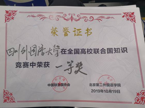 喜报|川外代表队荣获“第三届全国高校联合国知识竞赛”一等奖