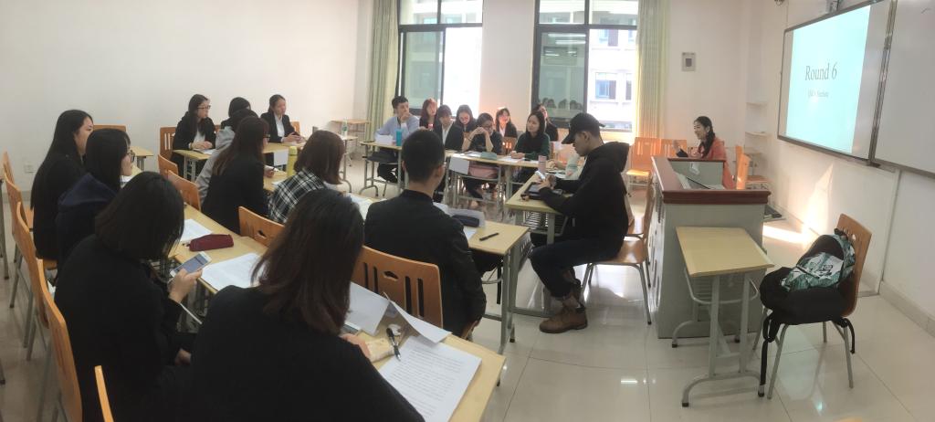 此次活动的主题是“Problemsand Solutions to BRICS People-to-people Exchange”,各班同学分成五个组,分别代表巴西(Brazil)、俄罗斯(Russia)、印度(India)、中国(China)和南非(South Africa)。会议过程中,国家代表发言顺序均按照BRICS字母先后排序进行。会议第一轮,各国代表根据活动主题,结合本国实际情况,在金砖国家会议举办的一般规则的指导下,表明代表国家立场。紧接着,在“Cooperation and Exchange in the Field ofCultural Industry and Cultural Trade”方面,各国代表阐述本国观点或提议,每位代表阐述完毕后需要解答上一位发言代表提出的疑问。会议第三轮的讨论主题为“Cooperation and Exchange Among Youth”,发言流程与第二轮相同。接下来是时长为二十分钟的自由磋商环节,每位国家代表可以离开自己的座位,与其他国家的代表进行自由协商以便达成协议。协商完毕,会议进行第五轮,各国代表陈述与其他国家的协商成果,并总结本国观点。最后一轮为问答环节,每位观察员向五国代表提出三个问题,由相应国家代表进行解答。活动结束,指导老师对同学们的表现进行点评,并提出改进的建议。