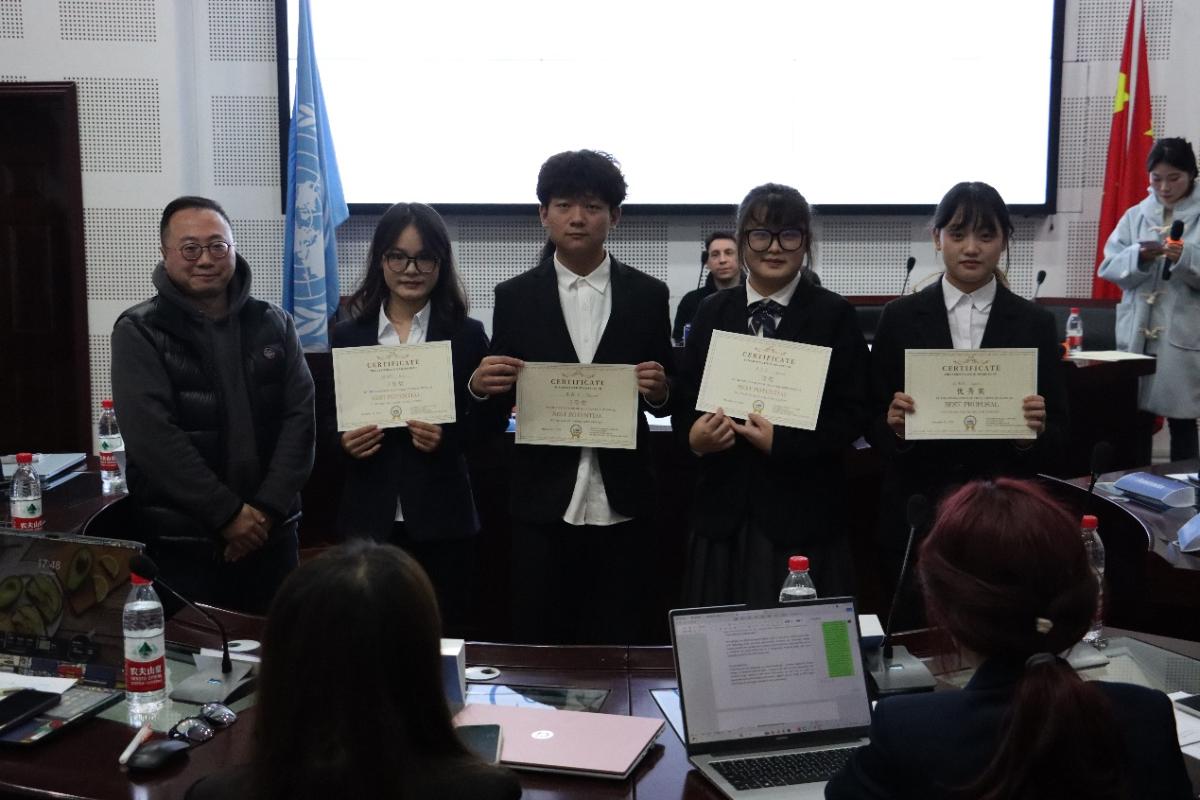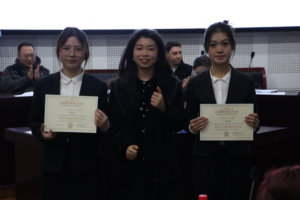 比赛结束后评委张国玺老师、Levin Erez老师及杨雪滢学姐进行了专业点评,肯定亮点、指出不足并给出建议,并颁发了奖项。菲律宾代表吴牧遥同学凭借出色表现、深刻见解及卓越谈判技巧,在众多选手中脱颖而出,荣获一等奖;印度尼西亚代表张馨月同学、新加坡代表李玥妍同学表现优异,在对议题探讨、合作推动等方面表现突出,同获二等奖;越南代表尹乙力同学、泰国代表冉鑫洋同学、秘鲁代表蒋春熙同学在比赛中积极参与、据理力争,为各自经济体争取利益同时展现良好团队协作,荣获三等奖;日本代表孙培瑶同学提出极具创新性与可行性的提案,为推动更加包容的合作之路贡献智慧,斩获最佳提案奖。