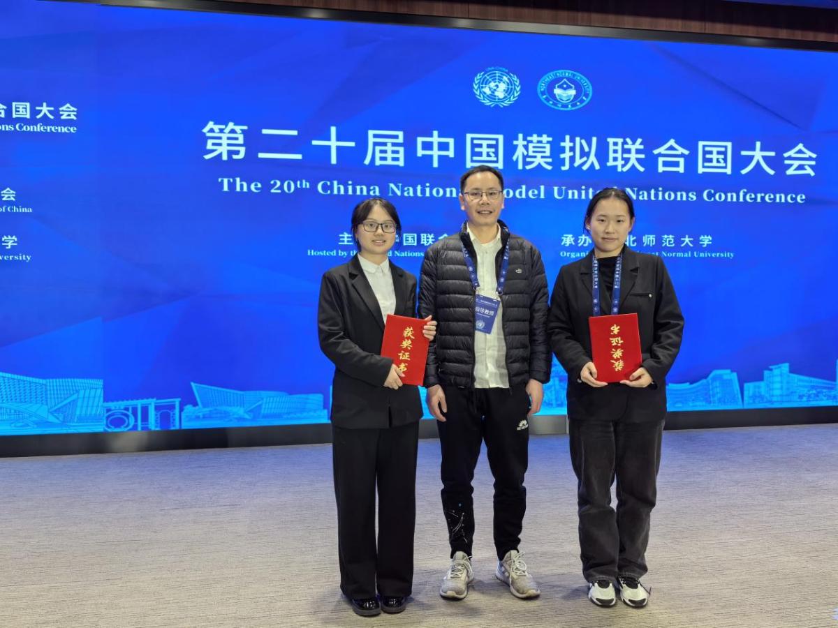 2024年10月24日至27日,由外交部国际司指导、中国联合国协会主办、东北师范大学承办的第二十届中国模拟联合国大会(The 20th China National Model United Nations Conference)在吉林长春顺利举办。我校模拟联合国协会(SISUMUNA)受大会组委会邀请,在国际关系学院和教务处的指导下,由孟利君、席桂桂和陈丽娅三位老师组成指导教师团队,孟利君老师担任带队指导教师,派出范碧瑞和黄雨萱两名同学组成的代表团参会。在比赛中两位同学表现优异,荣获大会最高奖——最佳代表团奖。这是我校学子连续六届在这一国内最具权威性、最贴近联合国的模拟联合国活动中荣获最高荣誉。