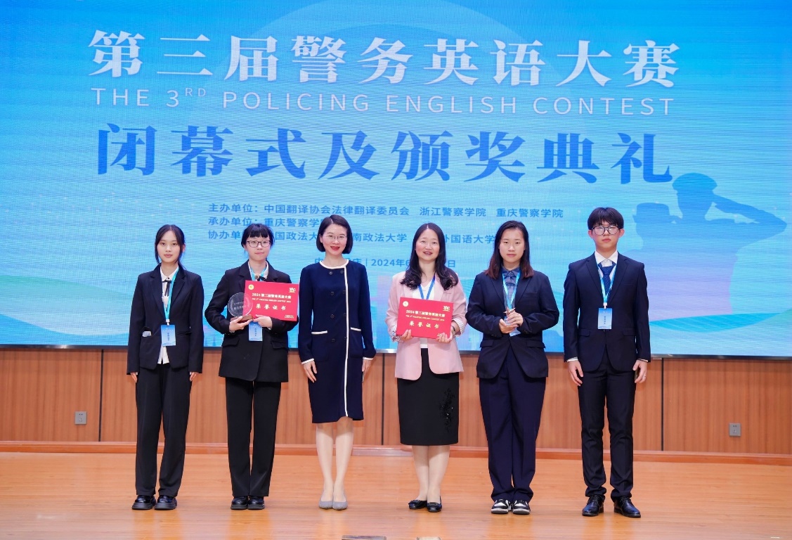2024年6月5日至7日,由中国翻译协会法律翻译委员会、重庆警察学院、浙江警察学院主办,重庆警察学院承办,中国政法大学、西南政法大学、太阳成tyc7111cc协办的“第三届警务英语大赛”于重庆警察学院顺利举行。来自中国人民警察大学、浙江警察学院、西南政法大学、江苏警官学院、山东警察学院等高等院校及浙江出入境边防检查总站等实战单位共20支代表队近100名选手参加了此次比赛,太阳成tyc7111cc代表队在大赛中荣获团体三等奖和个人最佳表现奖。