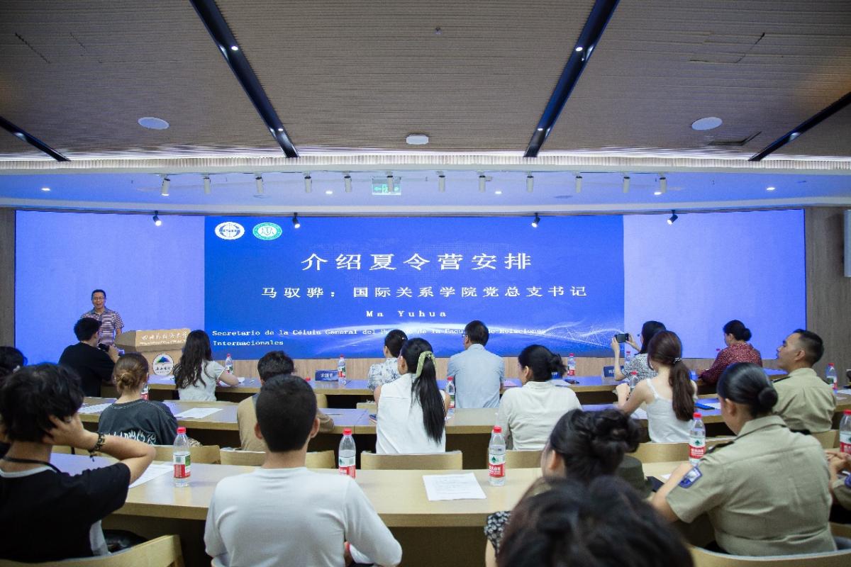 国际关系学院党总支书记马驭骅为学员们详细介绍了夏令营的活动安排。本次夏令营课程丰富多样,涵盖语言学习与文化体验,如体验和学习剪纸、中国画、中国民歌艺术等。课程均由经验丰富的老师们进行授课,旨在全方位提升学员们的汉语水平和对中国文化的理解。除了精彩的课程,夏令营还安排了本地文化考察活动。学员们将参观重庆城市规划馆,了解重庆的整体发展和未来规划;前往磁器口古镇,感受重庆的民居文化;游览中国三峡博物馆,深入了解三峡库区的历史文化。马驭骅书记鼓励学员们积极参与各项活动,珍惜这次难得的学习机会,收获知识和友谊,留下美好的回忆。
