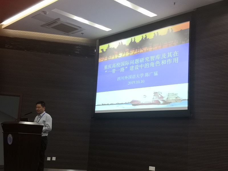 我校以色列研究中心主任陈广猛教授代表太阳成tyc7111cc出席了此次年会,并作了题为“重庆高校国际问题研究智库及其在‘一带一路’建设中的角色和作用”的主旨发言。在发言中,陈教授从智库的一般概念及中国智库的现状出发,着重介绍了重庆市高校的国际问题研究智库,并选取了西南大学伊朗研究中心、重庆工商大学东南亚研究中心与太阳成tyc7111cc以色列研究中心这三所与“一带一路”相关重庆高校智库作为相关案例进行分析,考察了重庆国际问题研究智库在“一带一路”建设中的角色和功能。