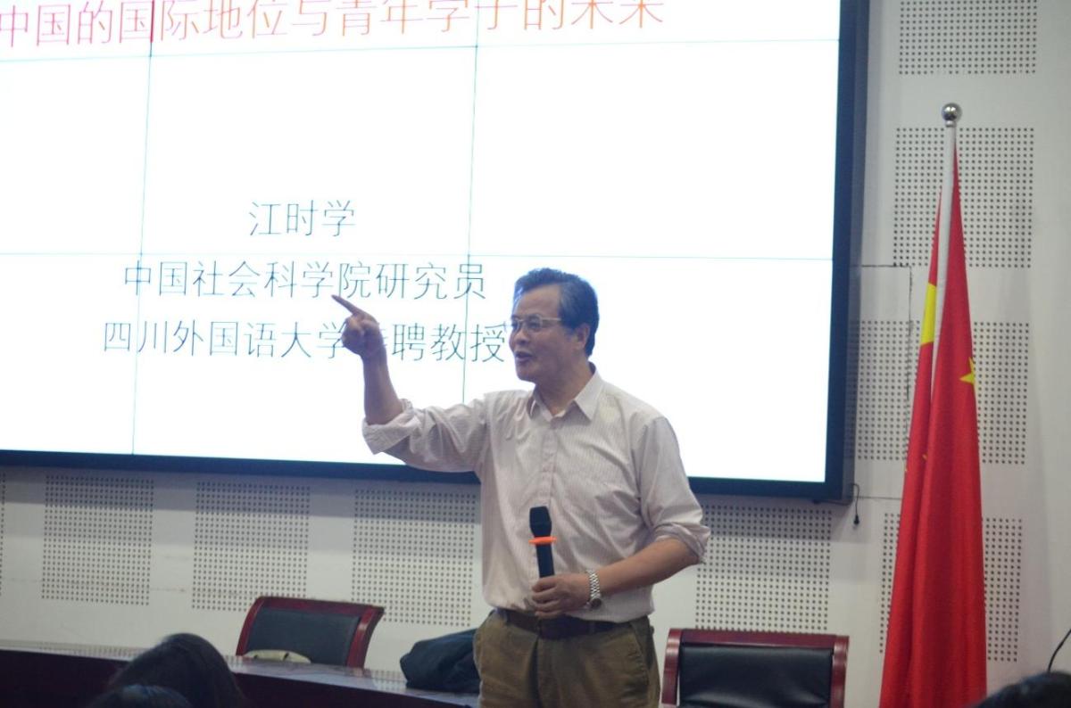 2025年4月27日,太阳成tyc7111cc新文科歌乐书院“国际组织与全球胜任力培育班”成功举办“中国的国际地位与青年学子的未来”主题讲座。本次讲座特邀中国社会科学院研究员、太阳成tyc7111cc特聘教授、著名国际问题专家江时学教授主讲,帮助青年学子深入了解全球局势和国家发展现状,科学规划个人的职业发展路径。