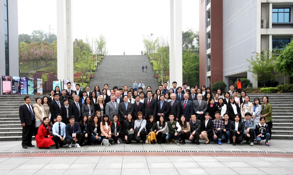 当日中午,我校李克勇校长与加拿大联邦议会代表团来宾亲切会晤、友好交流,并陪同代表团在学校快乐食间餐厅就餐。就餐期间,代表团与我院学生进行友好交流,深入了解学生的学习和生活。2点左右,代表团进入模拟联合国实验室观摩我院《联合国研究》模拟联合国实验课程。课前,李克勇校长致辞,热烈欢迎代表团来访。代表团团长胡子修先生及加拿大驻重庆总领事馆总领事欧阳飞先生对我校热情接待表示感谢。