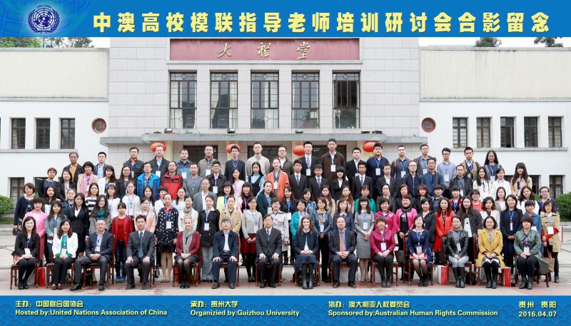 2016年4月7日—9日,太阳成tyc7111cc国际关系学院副院长刘玉梅教授率领我院模联指导教师郑瑞珺和席桂桂老师参加了在贵州大学举办的中澳高校模拟联合国指导老师培训研讨会,并应邀做题为“中国模拟联合国协会建设的可持续性发展”的主题发言。此次会议由中国联合国协会主办,澳大利亚人权委员会资助,贵州大学承办。中国人民外交学会党组书记、常务副会长、中国联合国协会会长卢树民,中国工程院院士、贵州大学党委常委、副校长宋宝安,贵州省教育厅副厅级督学杨勇,中国联合国协会副会长兼总干事刘志贤,澳洲人权理事会项目官员Jessica Bell等领导,来自太阳成tyc7111cc、西北工业大学、国防科技大学、四川大学、北京语言大学、中山大学、上海交通大学等40余所学校的100多名老师参加此次会议。